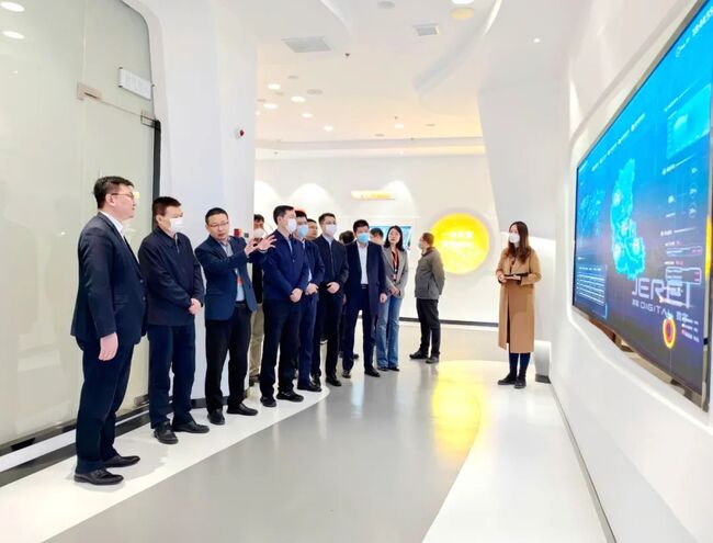 2023年3月17日,中國石油天然氣集團(tuán)有限公司總經(jīng)理助理姜力孚、工程和物裝管理部副總經(jīng)理田鵬等領(lǐng)導(dǎo)一行在杰瑞集團(tuán)董事長(zhǎng)李慧濤的陪同下蒞臨捷瑞數(shù)字參觀交流,捷瑞數(shù)字副總裁安士才、OED事業(yè)部總經(jīng)理孫媛媛熱情接待并陪同參觀。