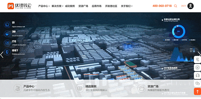 用戶可通過(guò)產(chǎn)品中心深入查看J3D數(shù)字孿生開(kāi)發(fā)平臺(tái)和RBI商業(yè)智能開(kāi)發(fā)平臺(tái)產(chǎn)品詳情,同時(shí)加入簡(jiǎn)約元素與強(qiáng)交互設(shè)計(jì),提升用戶瀏覽體驗(yàn)感。