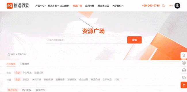 優(yōu)化資源廣場(chǎng),將應(yīng)用模板及三維模型庫(kù)進(jìn)行重新整合、分類、規(guī)劃布局,幫助用戶更輕松地查找檢索對(duì)應(yīng)模型及場(chǎng)景,更好地實(shí)現(xiàn)數(shù)字孿生場(chǎng)景搭建,縮短用戶學(xué)習(xí)周期。