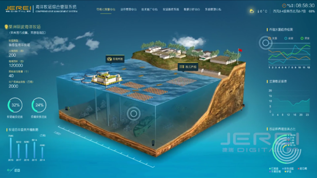 在海洋強國戰略的支持和可持續發展的需求下,捷瑞數字攜伏鋰碼云平臺,為展會現場帶來基于伏鋰碼云平臺打造的海洋牧場解決方案,助力海洋漁業綜合生產能力和可持續發展能力,打造良好海洋牧場生態。