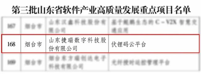 近日,山東省工業和信息化廳公布了第三批山東省軟件產業高質量發展重點項目名單,捷瑞數字自主研發的工業互聯網平臺-伏鋰碼云平臺成功入圍重點項目名單。