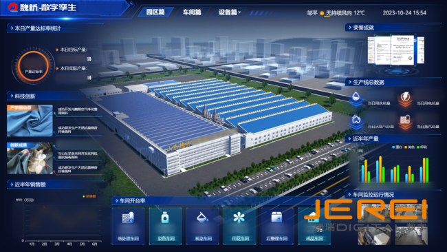 在魏橋數(shù)字孿生綠色智能印染工廠,園區(qū)的生產(chǎn)、運(yùn)營(yíng)、管理都得以數(shù)字化、智能化轉(zhuǎn)型升級(jí)。