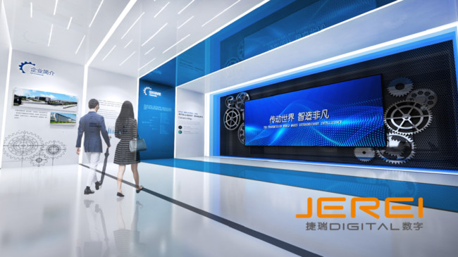 捷瑞數字打造的第五代數字展館——數字中心,以一套空間布局+N套數字內容+定制智控后臺,打造視覺、內容符合企業形象的數字展廳,實現多主題內容自由切換,滿足多類受眾需求。并依托數字內容實現內容無限拓展,實現展廳一鍵換館,并以數據驅動外部展示與內部業務提效,推動企業數字化轉型。