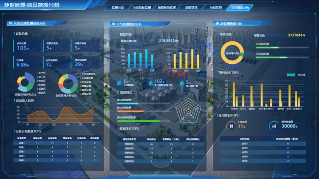園區污染治理:實現對園區內環境質量、能源消耗和廢棄物排放的實時監測與分析,通過實時監測和數據分析,系統能夠及時發現和解決環保問題,降低園區內的污染物排放。