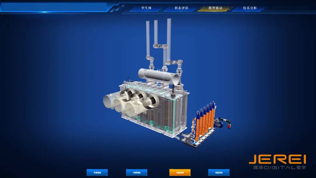 變壓器是水電站電力系統中關鍵設備之一。目前,當變壓器出現疑似缺陷等故障問題時,一般采用人為開展碎片式數據收集分析的方式進行研究檢查,無法系統、及時、全面的進行設備健康評價、故障預測和智能診斷。捷瑞數字攜手國內某大型電站打造主變壓器數字孿生體,以數字孿生、虛擬仿真技術賦能變壓器的巡檢維護,提升變壓器運維管理水平,實現變壓器由“傳統人工運檢”向“智能數字驅動”的管控轉型。